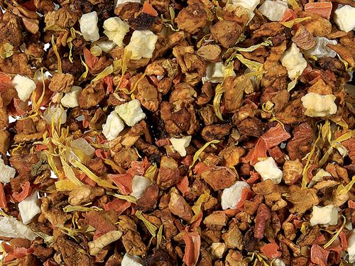 Nevina vanjština temelji se na komadićima jabuke, pahuljicama mrkve i kockicama ananasa. Nismo dodali kiseli hibiskus, ali pazite, ova mješavina ima svoja iznenađenja. Komadići jabuke u ovoj kreaciji bili su obloženi limunskom kiselinom. Ovaj intenzivan , sočan , osvježavajući sastojak s okusom limuna izmami vam osmijeh na lice. Voćni užitak sa svježim notama ananasa i kruške. Ljeti poslužen hladan, ovo je idealno osvježenje za žedna grla.